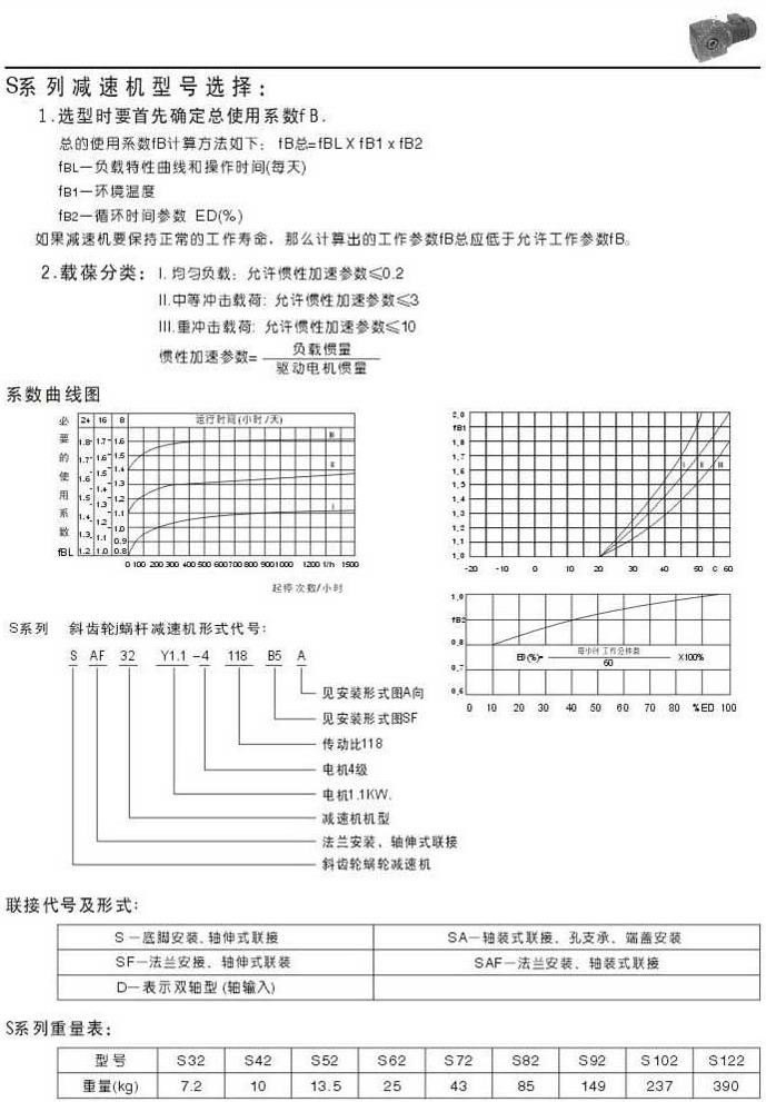 S系列減速機型號表示系數曲線圖聯結代號及形式重量表